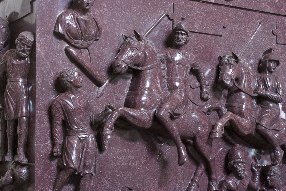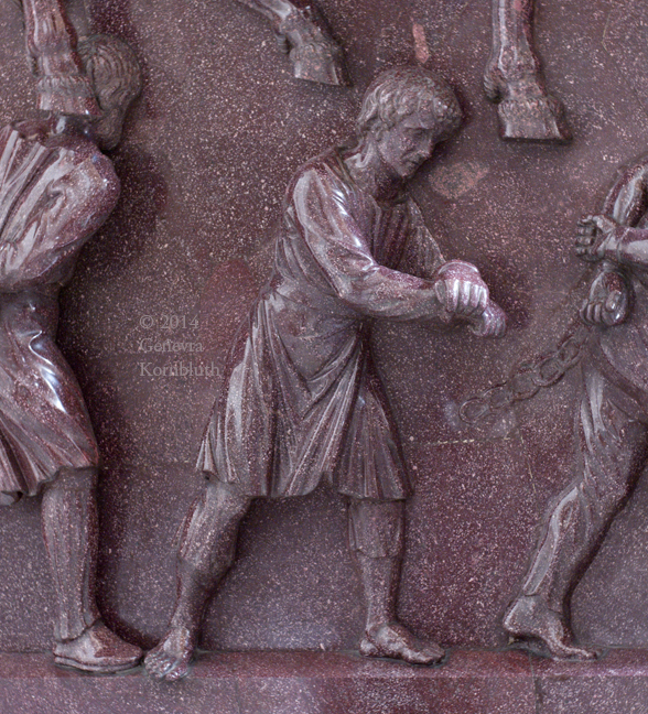 barbarian prob. fr. sarcophagus Helena, slight angle from below, porphyry, 4th c., V&A A.102-1956