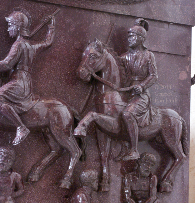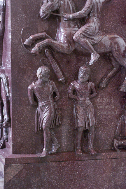 front: riding soldiers, defeated barbarians, quivers, personifications of defeated peoples (?)
