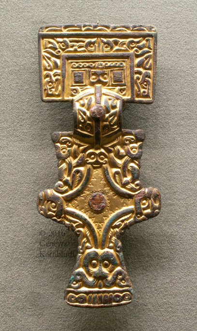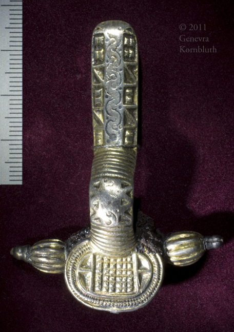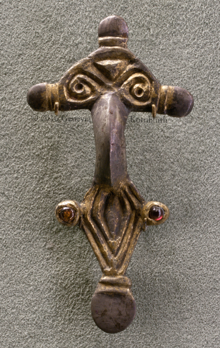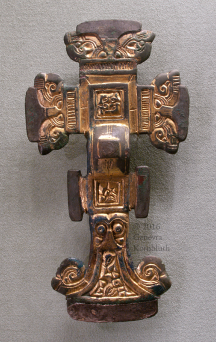 cruciform brooch, copper alloy/gilt/silver/iron, c.500-550 Anglo-Saxo, Morgan 2012.2:72. For detail see Morgan.
