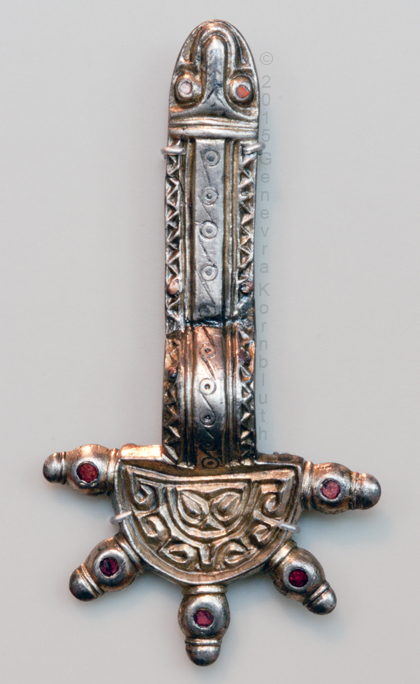 fibula, gilt bronze/garnet, 6th c., Lejre 6150PX256. For another view see Lejre.