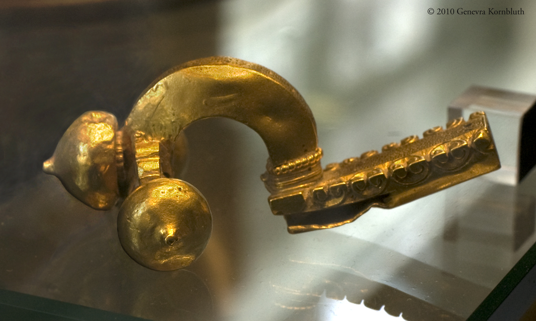 crossbow fibula, Paris 2nd half of 4th c., gold plate, Musée Carnavalet Paris AM 1089. For another view see Carnavalet.