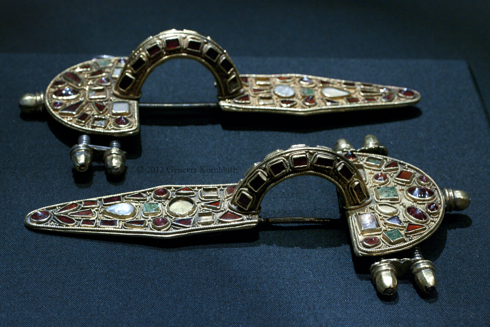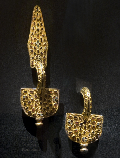 bow fibulae from Szilágy Somlyó, silver/gold/garnet/green glass, 5th c., HNM 122/1895.2-2a.-N.83-84. The Szilágy Somlyó treasure has its own page.