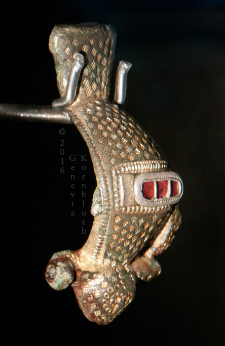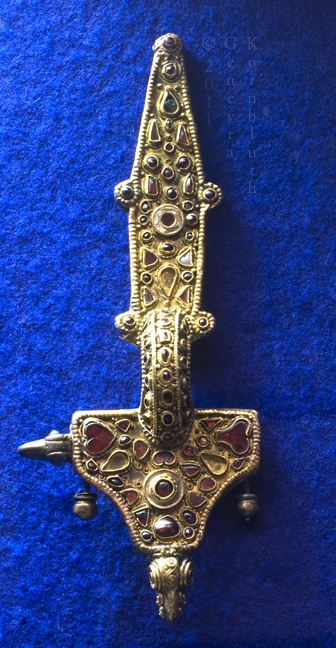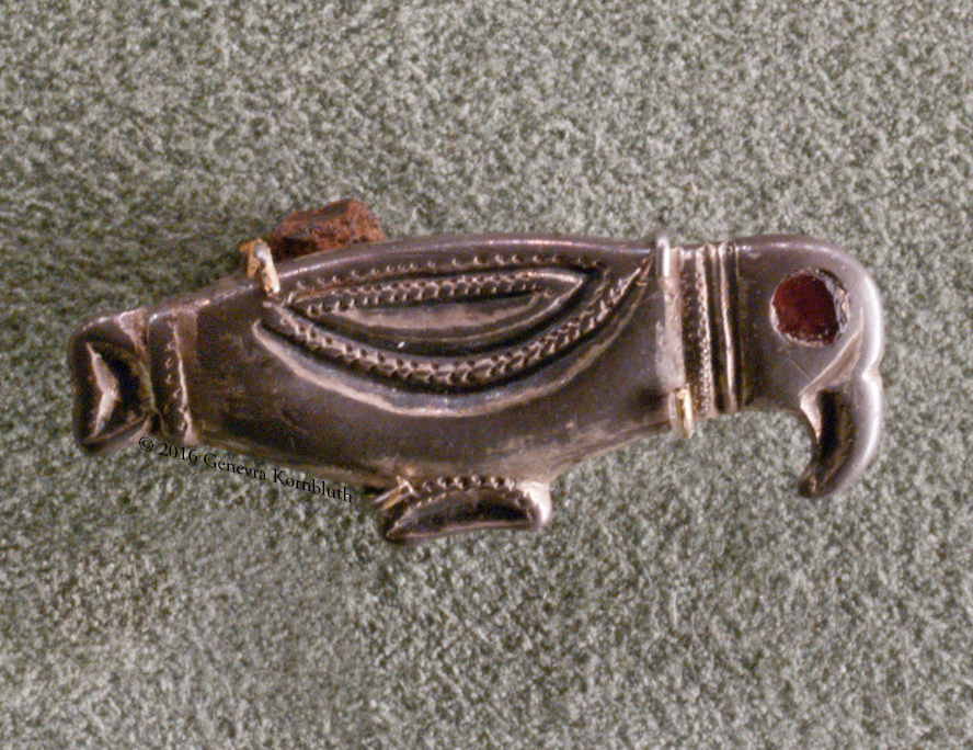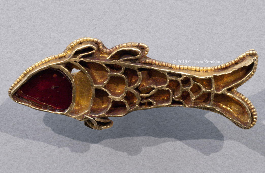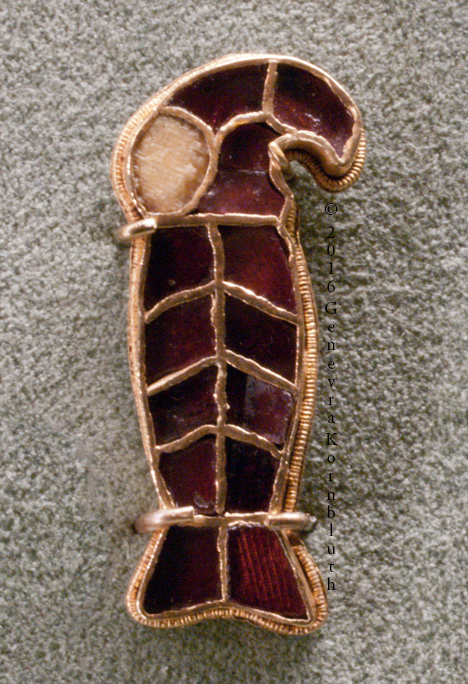 fish fibula, gold and garnet, 6th c., V&A M.120-1939