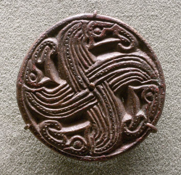 animal interlacee saucer brooch fr. Mitcham, gilt copper alloy, 6th c., MoL A19891