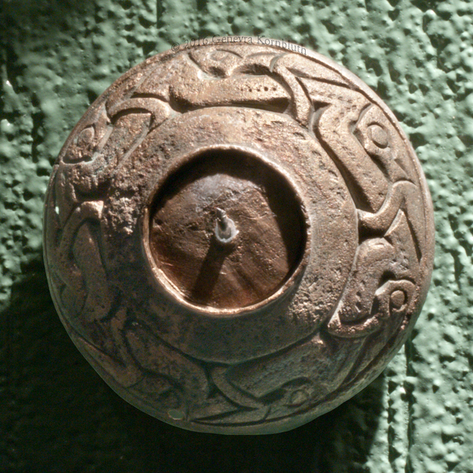 conical brooch with snakes, bronze, 6th-7th c., OHM C230