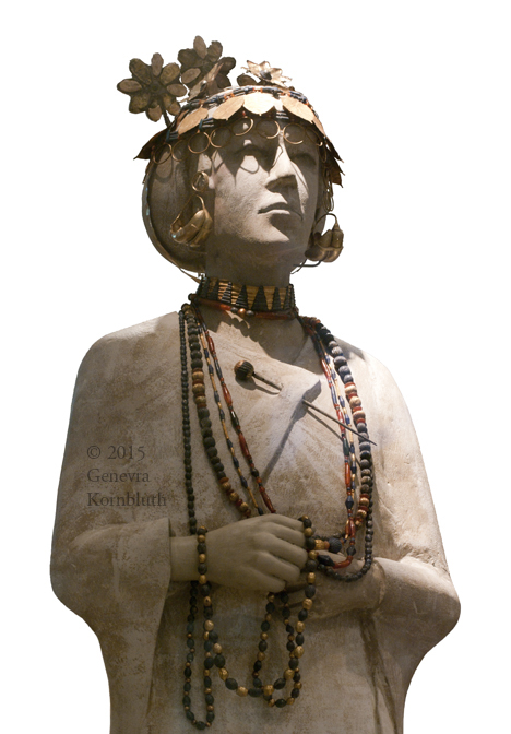 related: dress pin of attendant in tomb of Queen Puabi, Ur c.2550-2450 BC, Penn. For detail of beads see Penn.