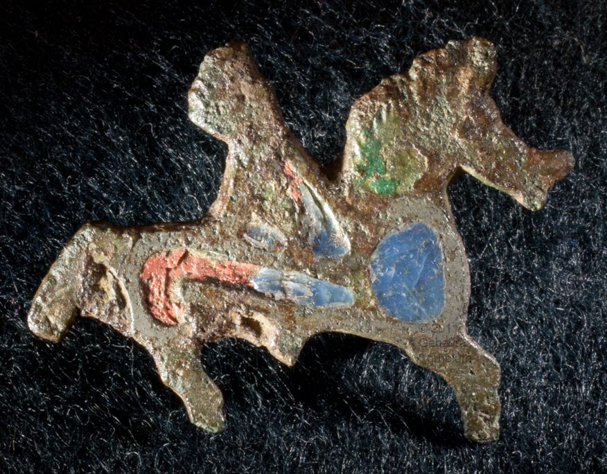 Roman horse and rider fibula, bronze/enamel, prob. 1st-2nd c., MStA 1981.2873, which has its own page