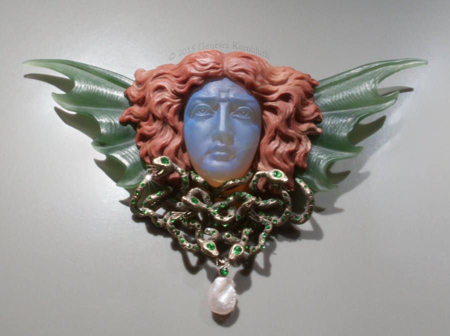 Gorgon brooch, gold/opal/nephrite/jasper/emerald/pearl, Wilhelm Lucas von Cranach, Berlin 1902, KGM LG 147. For detail see Berlin.