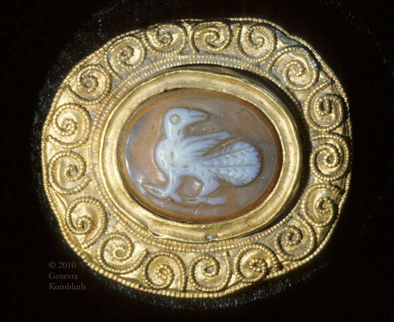 oval fibula with center cameo bird, agate and gold, 7th c. Italy?, DO 37.26
