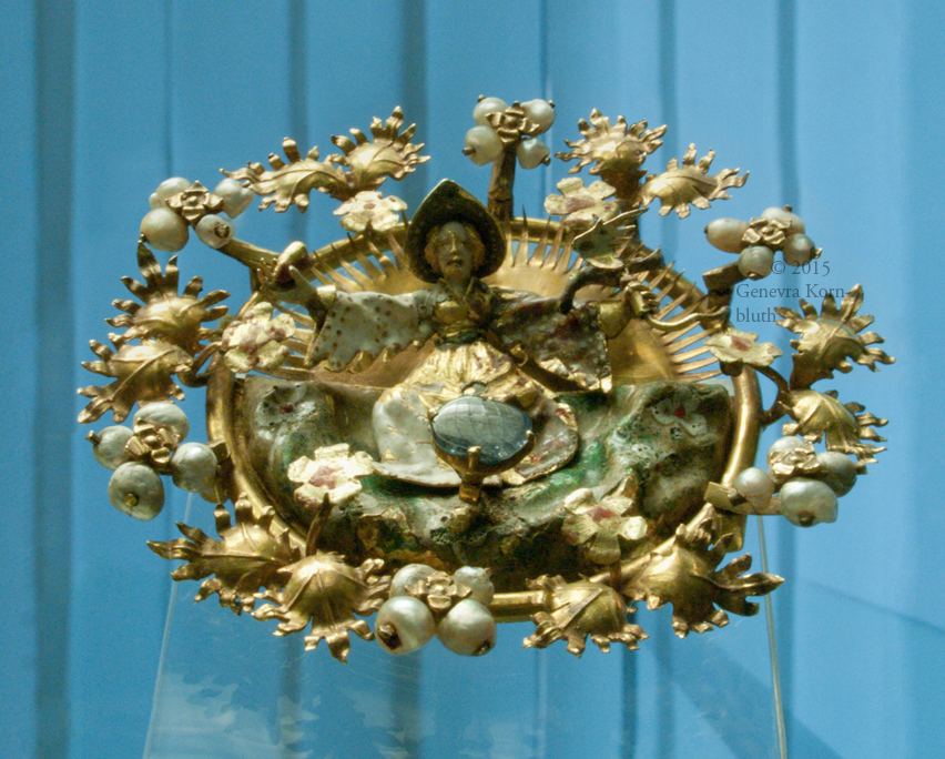 Falconer brooch, gold/enamel/sapphire/pearl, early 15th c., KGM F 1364. For other views see Berlin.