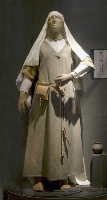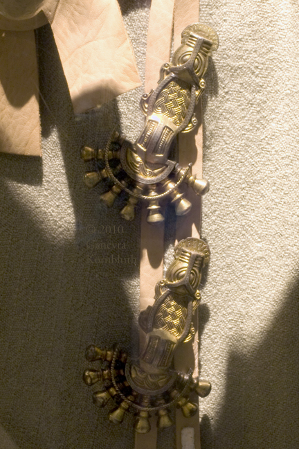 material from Szentendre grave 56, c.550-70, displayed on reconstructed clothing, HNM