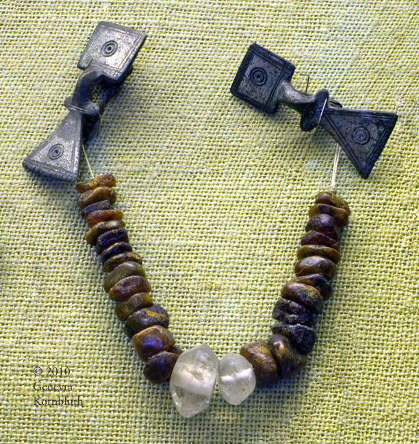 small-long fibulae with amber and crystal beads (one a faceted whorl) from Barrington B, CMAA Z.21298
