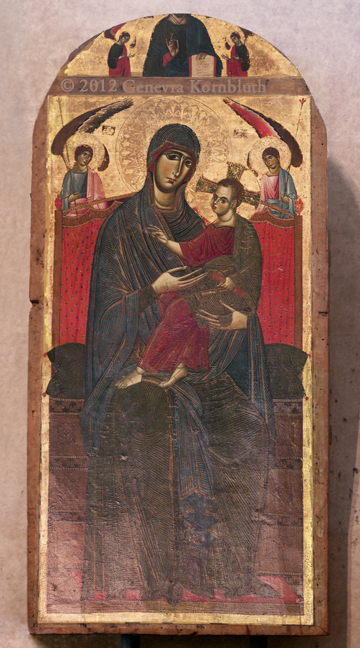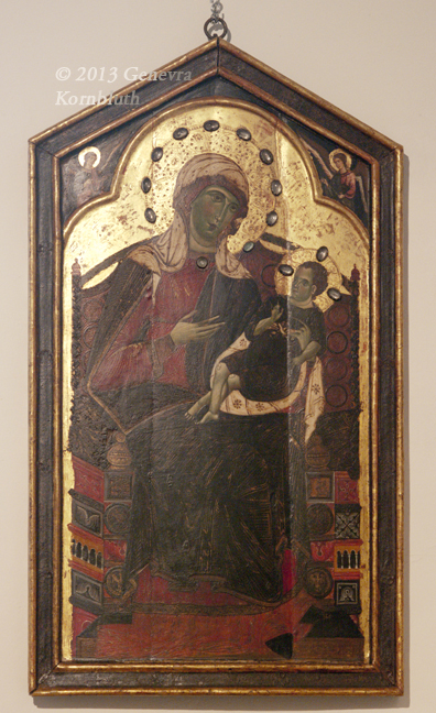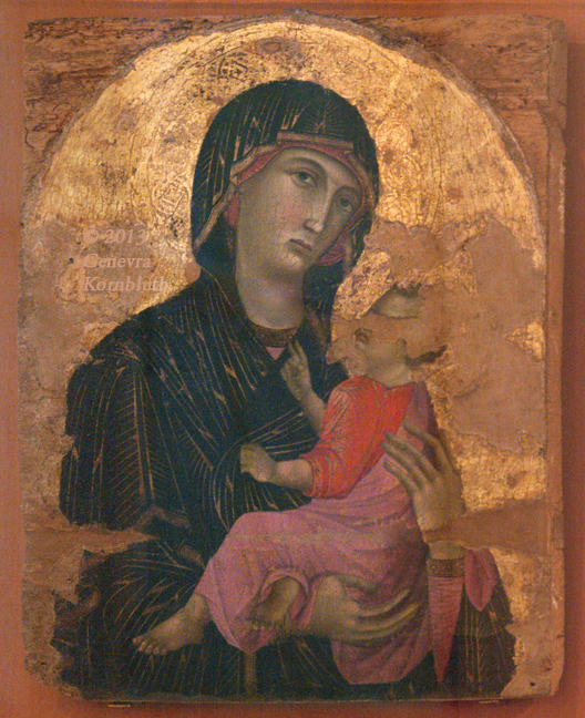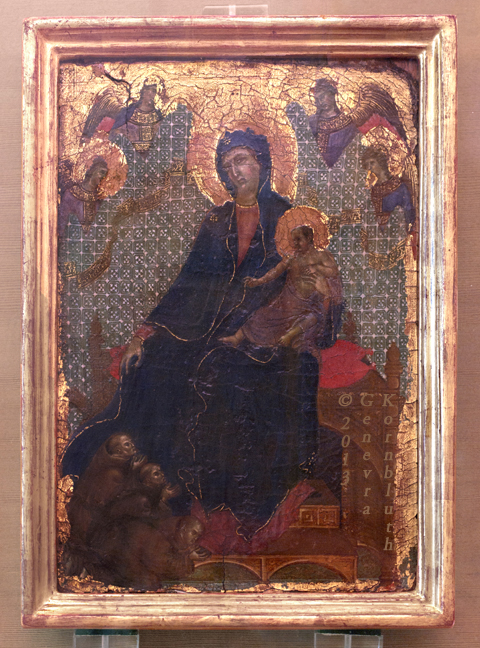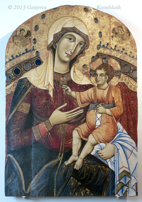 Virgin and Child, Badia a Isola Master (or Duccio with Badia a Isola Master) c.1290, tempera and gold on wood 65 x 50 cm, SPN 593. For details see Siena.