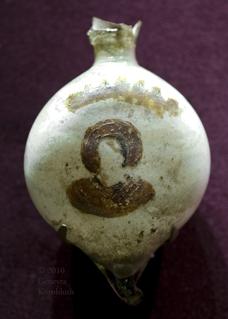 glass ampulla with painted saint, 5th to 6th c. Syria/Palestine, CMA 1999.236. For another view see CMA.