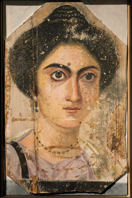 Mummy portrait, 4th c. Egypt, tempera, Florence MA. This work has its own page.