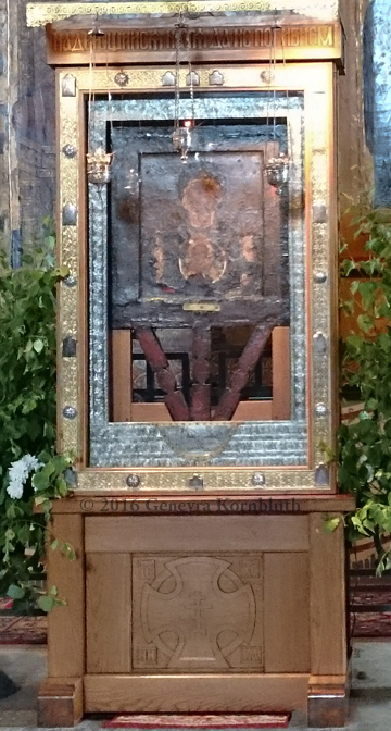 icon Our Lady of the Sign, mid 12th c. before 1169, Novgorod Cathedral, which has its own interior page. This photo not available at high resolution.