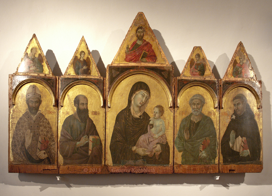 Virgin and Child with SS Paul, Peter, John the Evangelist, and Andrew, c.1265-75, Madonna del Voto Master (Dietisalvi di Speme?), SPN 6. This work has its own page.