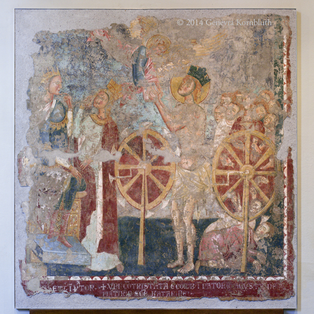 St. Catherine of Alexandria, late 13th c. Rome, fresco from S. Agnese sulla via Nomentana, Vat 40478. For details see Vatican Museums.
