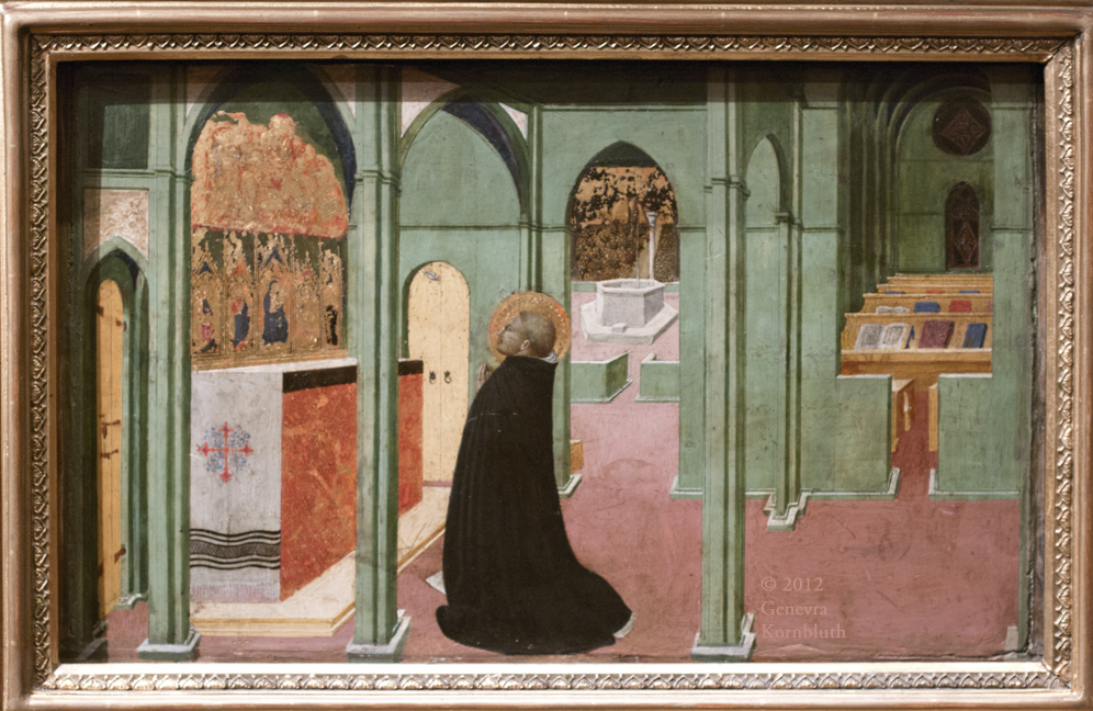 St. Thomas Aquinas at Prayer (predella panel from a polyptych), tempera on poplar wood, Sassetta (Stefano di Giovanni), c.1423-26, MFAB 32. This work has its own page.