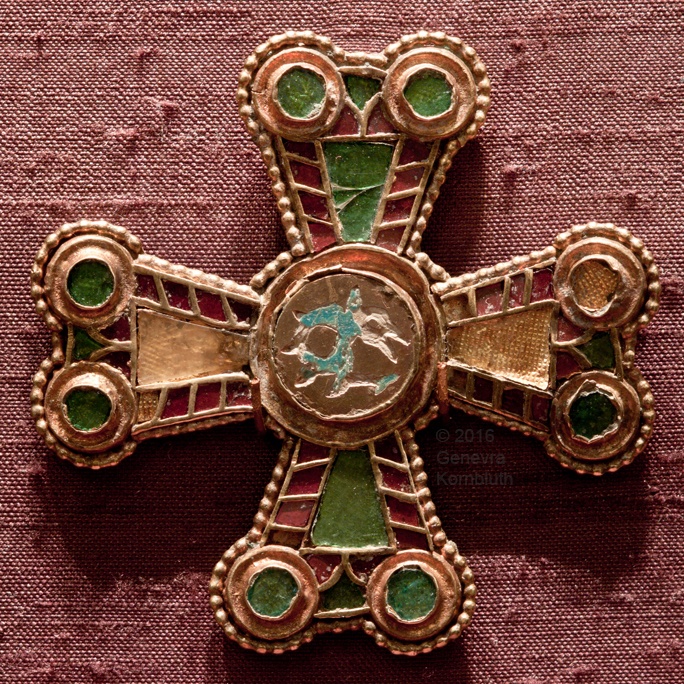 cross, copper plate/glass, 9th to 10th c. Cologne, Schn G6. For oblique view see Schn.