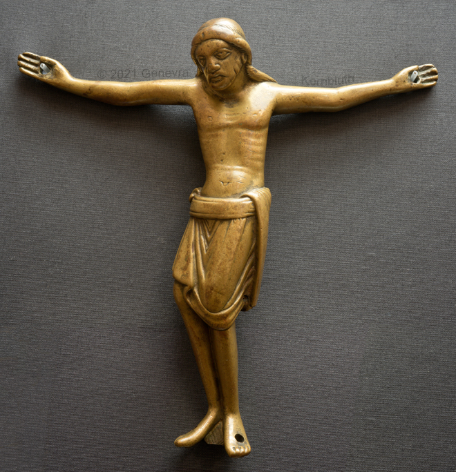 crucified Christ, bronze, Reiner of Huy?, Liège c.1110-20, Schn H70