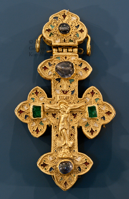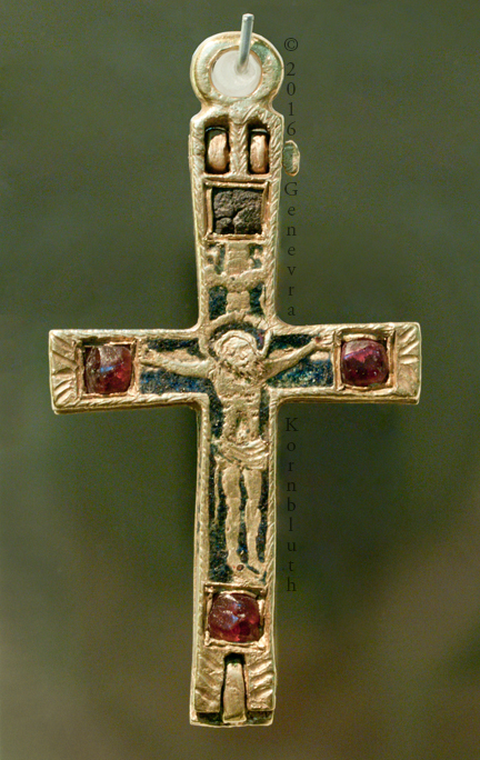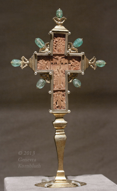 reliquary cross, gold/enamel/?garnet, 15th c., MoL 94.240