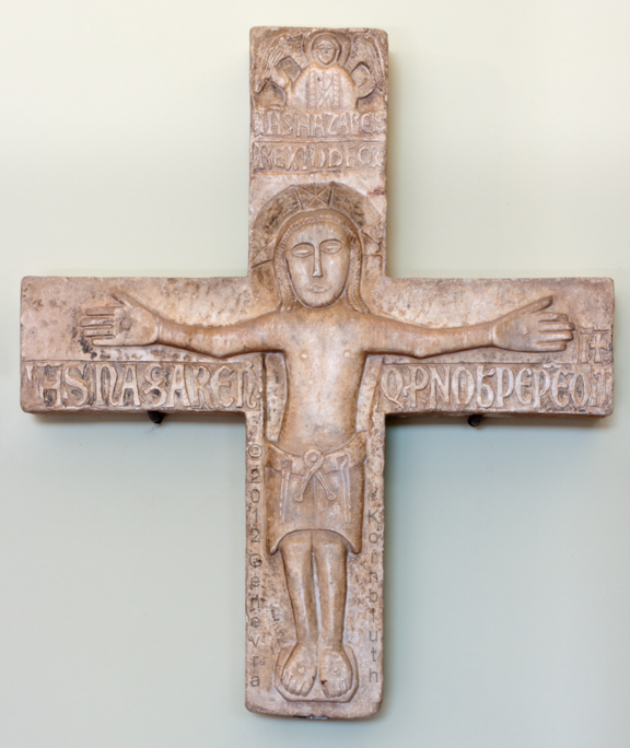 marble roadside cross, Arezzo area late 12th-early 13th c., Arezzo MS. For oblique view see Arezzo Museums.