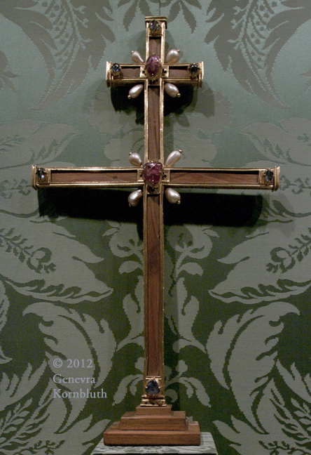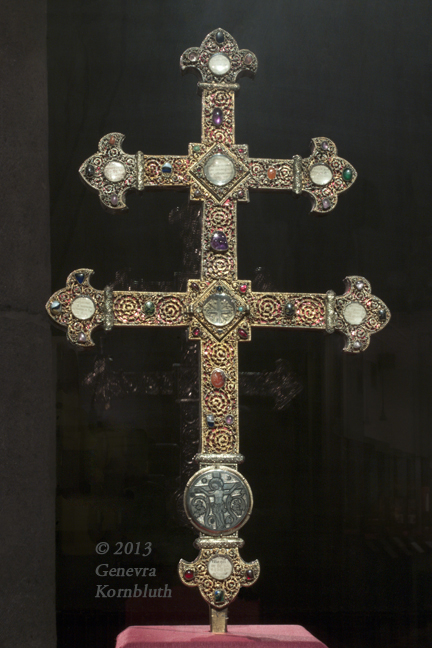 Reliquary cross, silver gilt and gems on wood core, Hugo de Walcourt c.1230, MRAH 3214. This work has its own page.