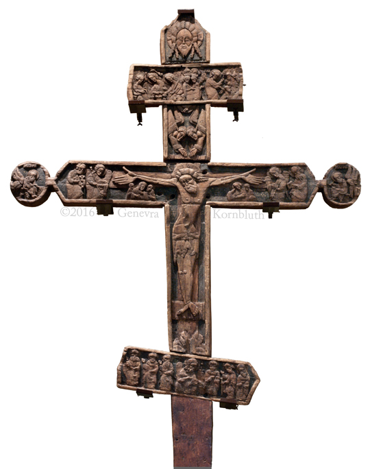 Cross fr. Red Field Monastery, wood, c.1500-50, which has its own page, Novgorod AM