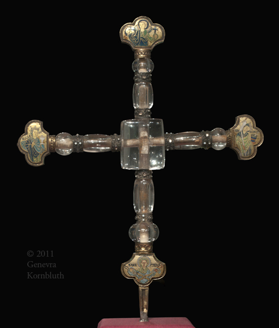 cross from Scheldewindeke, rock crystal and enamel, Mosan c.1170-1200, MRAH 3669. This work has its own page.