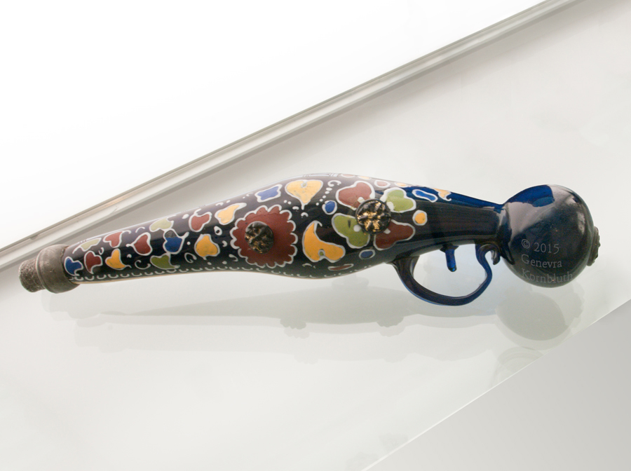 glass vessel in form pistol, pewter stopper, Bohemia/Silesia 17th-18th c., KGM W-1971.116