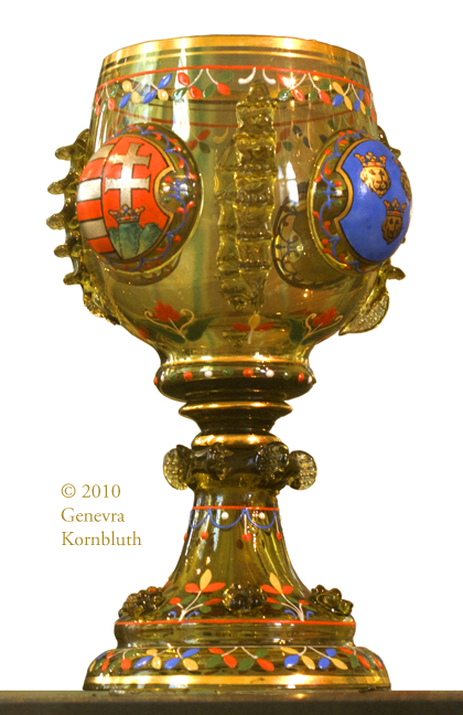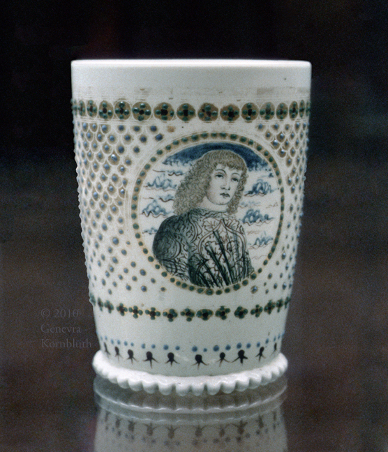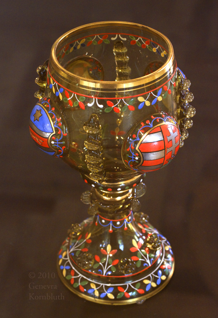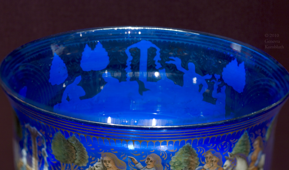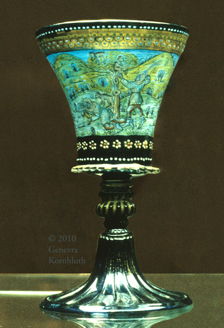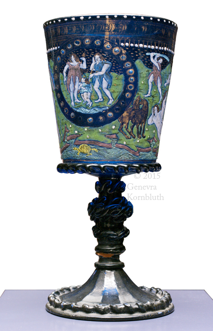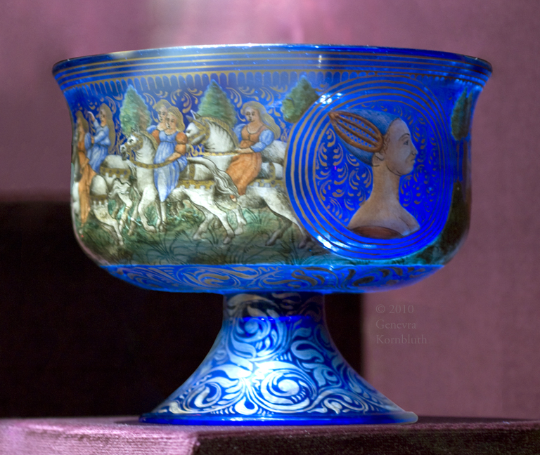 footed beaker with Creation, enameled mold-blown glass, Venice c.1490, KGM 1935,51, which has its own page