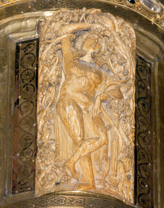 Bacchus ivory, 6th c. Egypt, on ambo, Aachen cathedral. The ambo and cathedral have their own pages with another ivory.