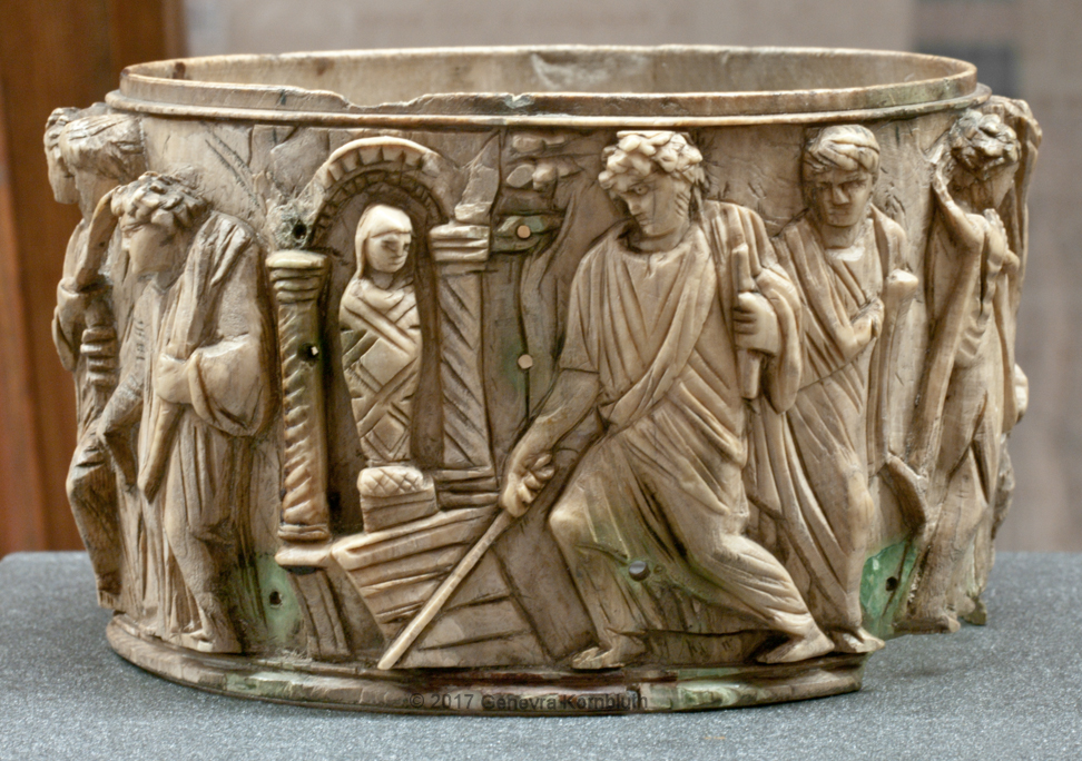 Resurrection, ivory pyxis, 6th c., eastern Mediterranean, VHM, loan from Sion CT. This work has its own page.