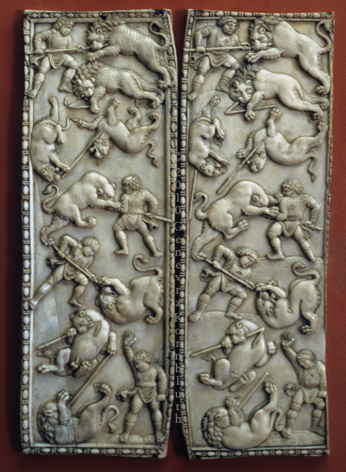 circus scenes diptych, 2nd half of 5th c., Hermitage. For detail see Hermitage.