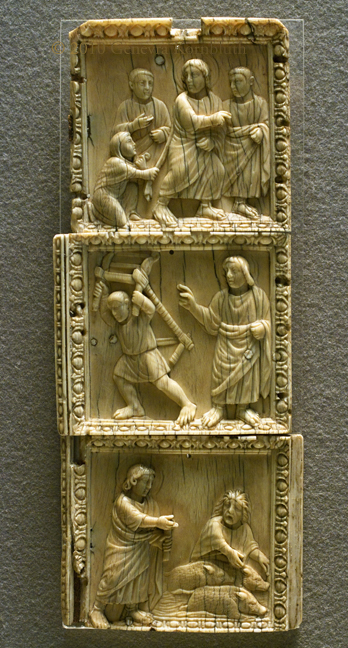 miracles of Christ: healing of the Haemorrhoissa, the Paralytic, and the Demoniac, Rome c.400, Louvre OA 7876, 7877, 7878. For other views see Louvre.