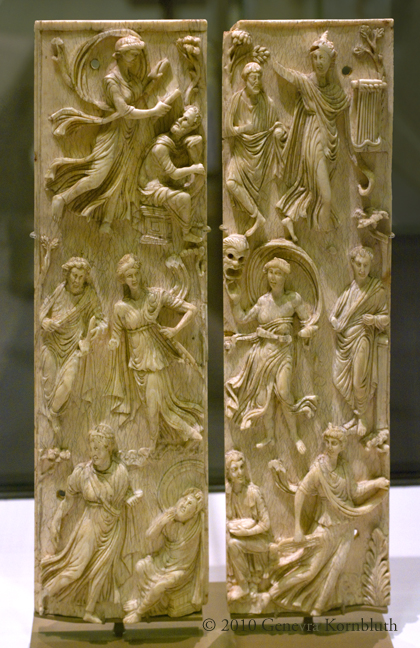 Muses diptych, 5th c., Louvre LP 1264. For details see Louvre.