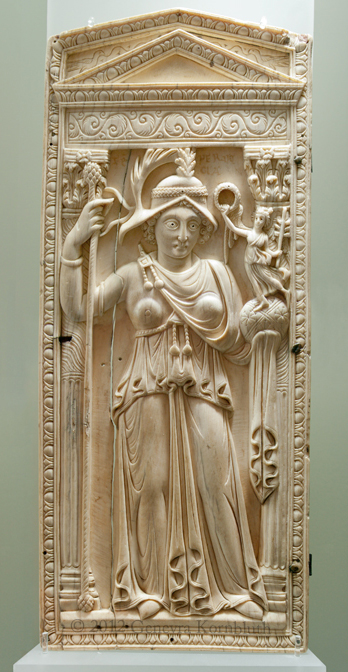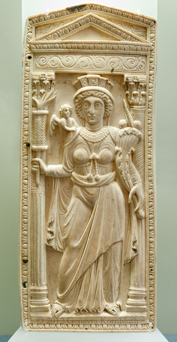 priestess at altar of Cybele (Nicomachorum ivory), early 5th c., Cluny Cl.17048. This work has its own page.