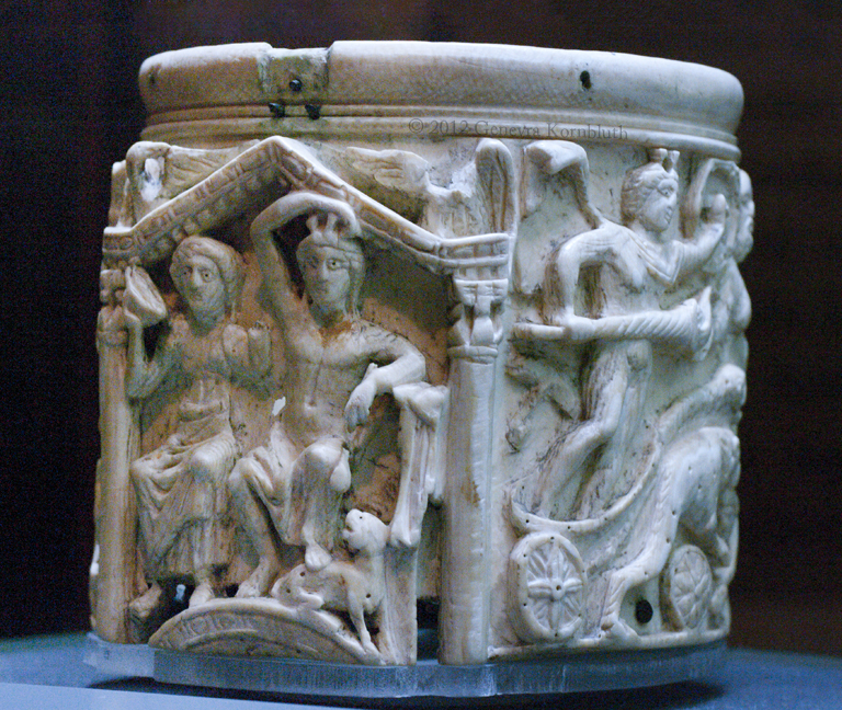 Bacchus and Ariadne, ivory pyxis, 5th-6th c., Trier? KHM X41, which has its own page