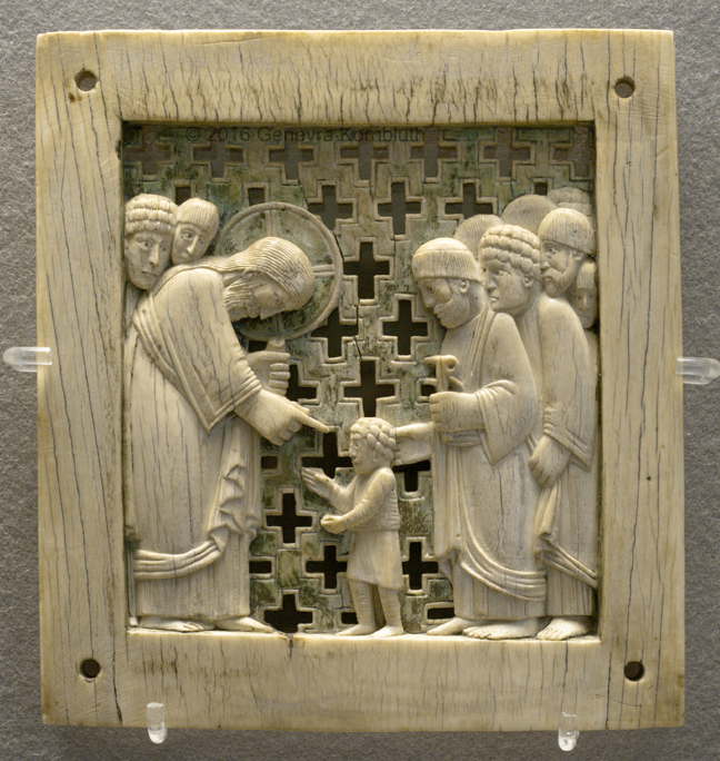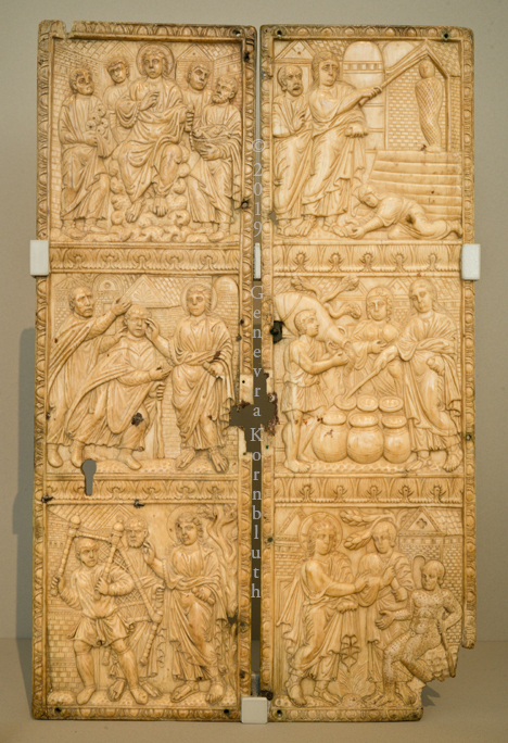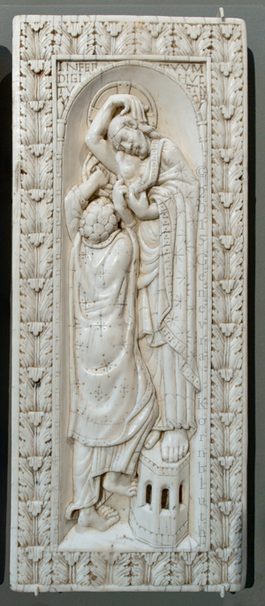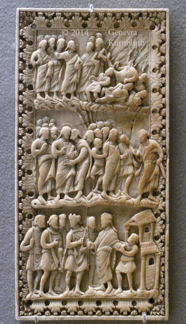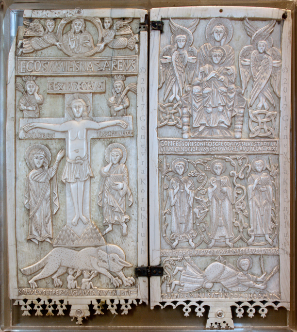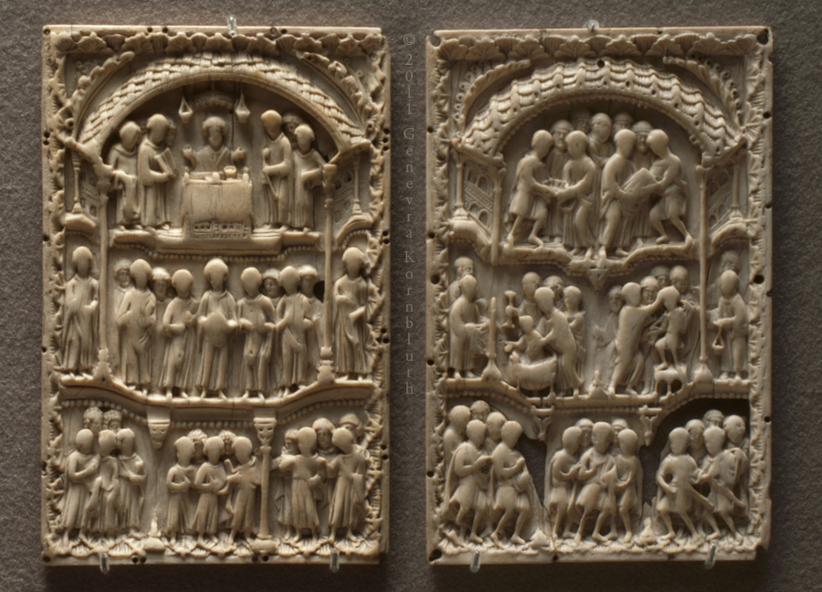 Andrews diptych, ivory, early 9th c. or poss 5th c., V&A A.47&A-1926. For oblique view see V&A.