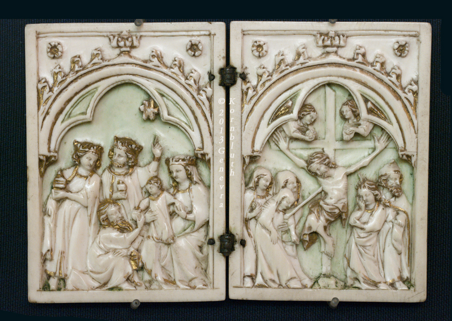Adoration Magi and Cucifixion, ivory diptych, France c.1325-1350, Cluny Cl.15330-15331