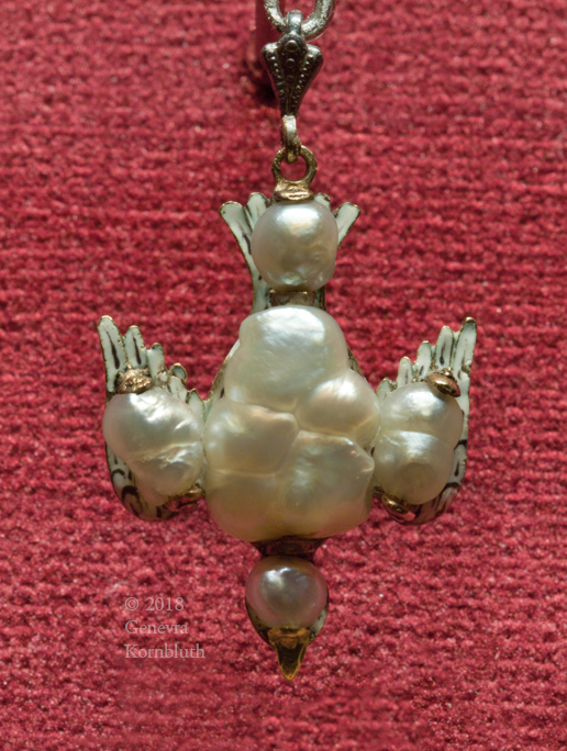 Dove pendant, France or Flemish 17th c.: Baroque pearls, gold, enamel. AIC 1992.538