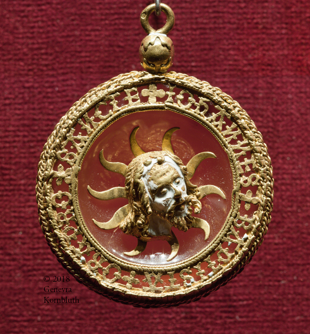 15th c. Novgorod silver gilt mount with 12th c. Byzantine Christ Pantokrator jasper cameo, Novgorod AM