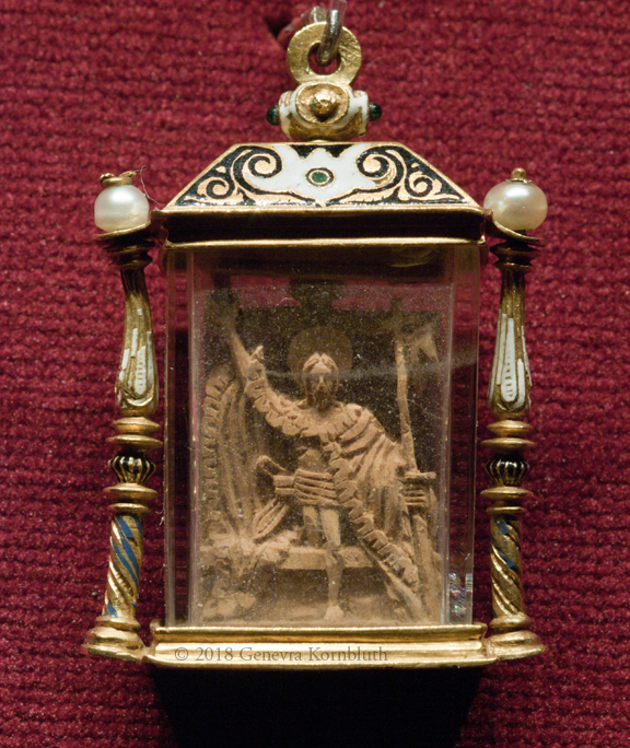 Resurrection pendant, 16th c. Spain or Spanish colonial: wood, rock crystal, enamel, pearl. AIC 1992.532