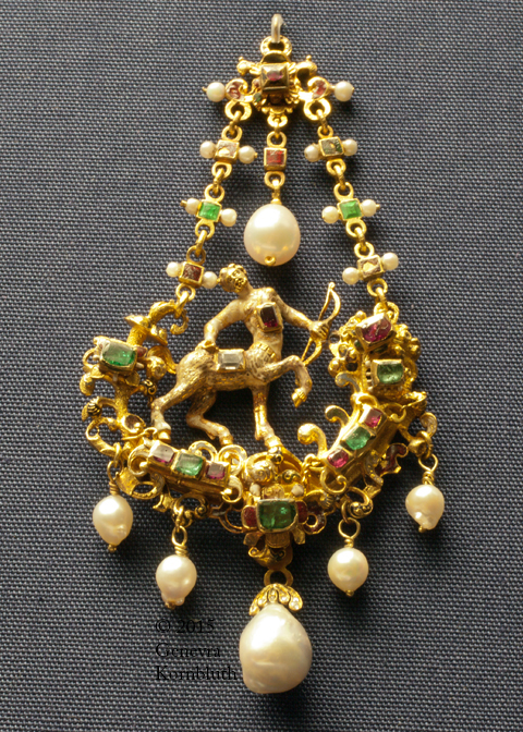 centaur pendant, gold/enamel/ruby/emerald/diamond/crystal/pearl, Italy 16th c., KGM 1855,1099