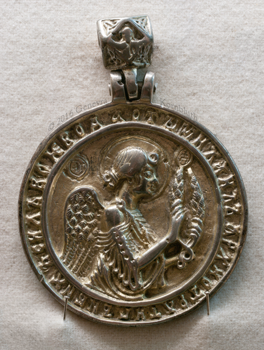St. George enkolpion, undated Byzantine steatite, DO 1940.5. For reverse see DO.