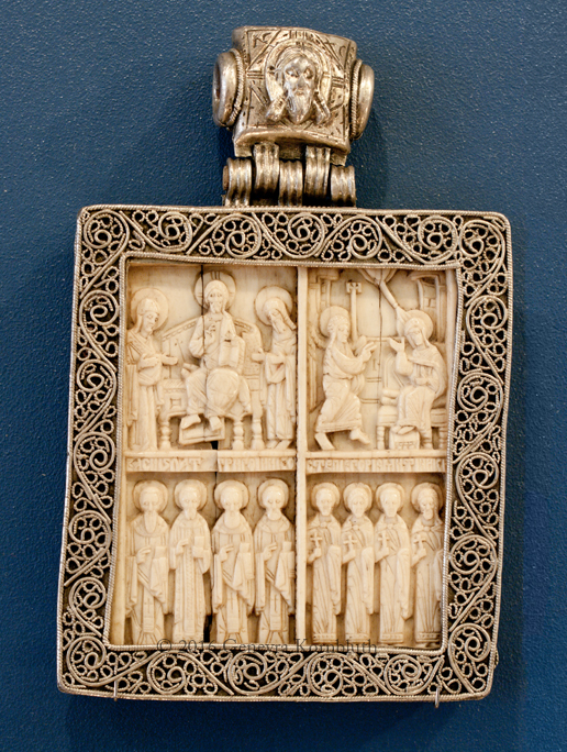 Our Lady of the Sign, Deesis, saints: bone/silver gilt/turquoise/glass, 16th c., Novgorod AM