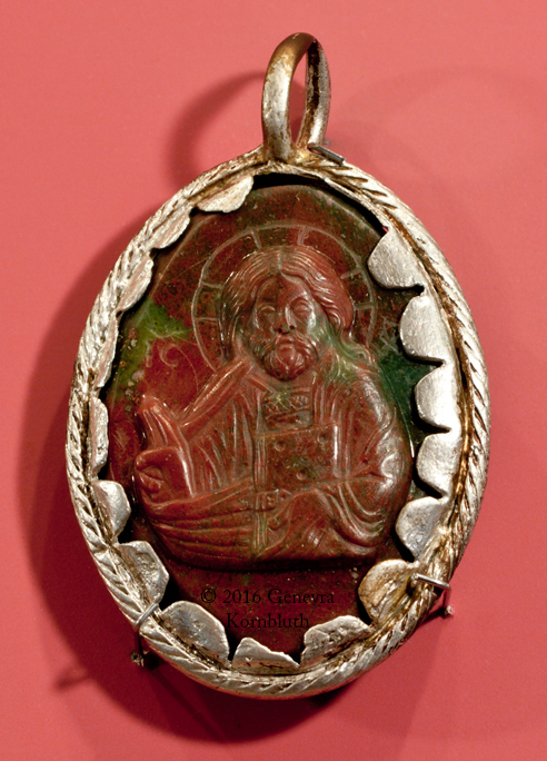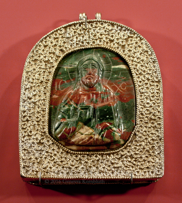 15th c. Russian? mount with Christ Pantokrator cameo, jasper?, 13th c. Byzantine?, Novgorod AM