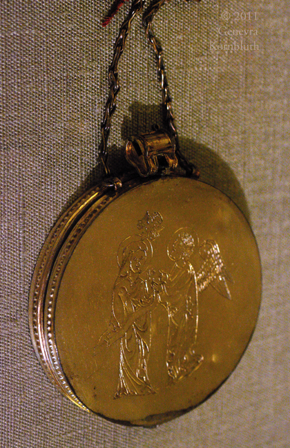 pendant reliquary with Annunciation from Guelph Treasure, silver gilt, Brunswick 1300-25, PMA 1931-24-1. For frontal view see PMA.