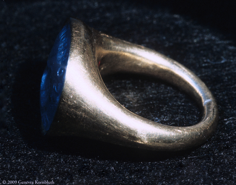 20th-c. gold ring with 1st-c. chalcedony seal, p.c., which has its own page